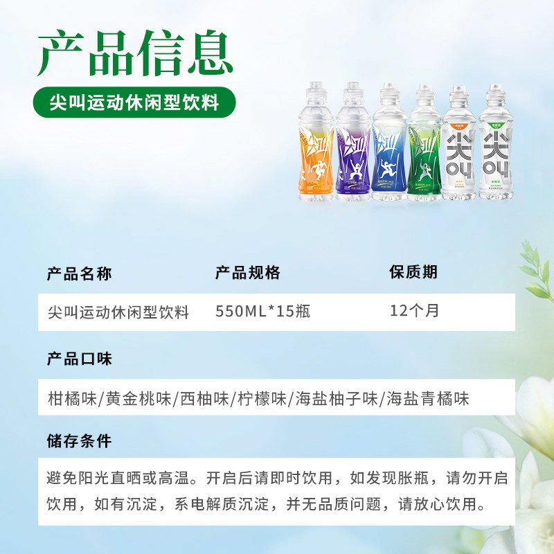 农夫山泉尖叫运动饮料 550ml 乳钙型柑橘味氨酸型黄金桃味
