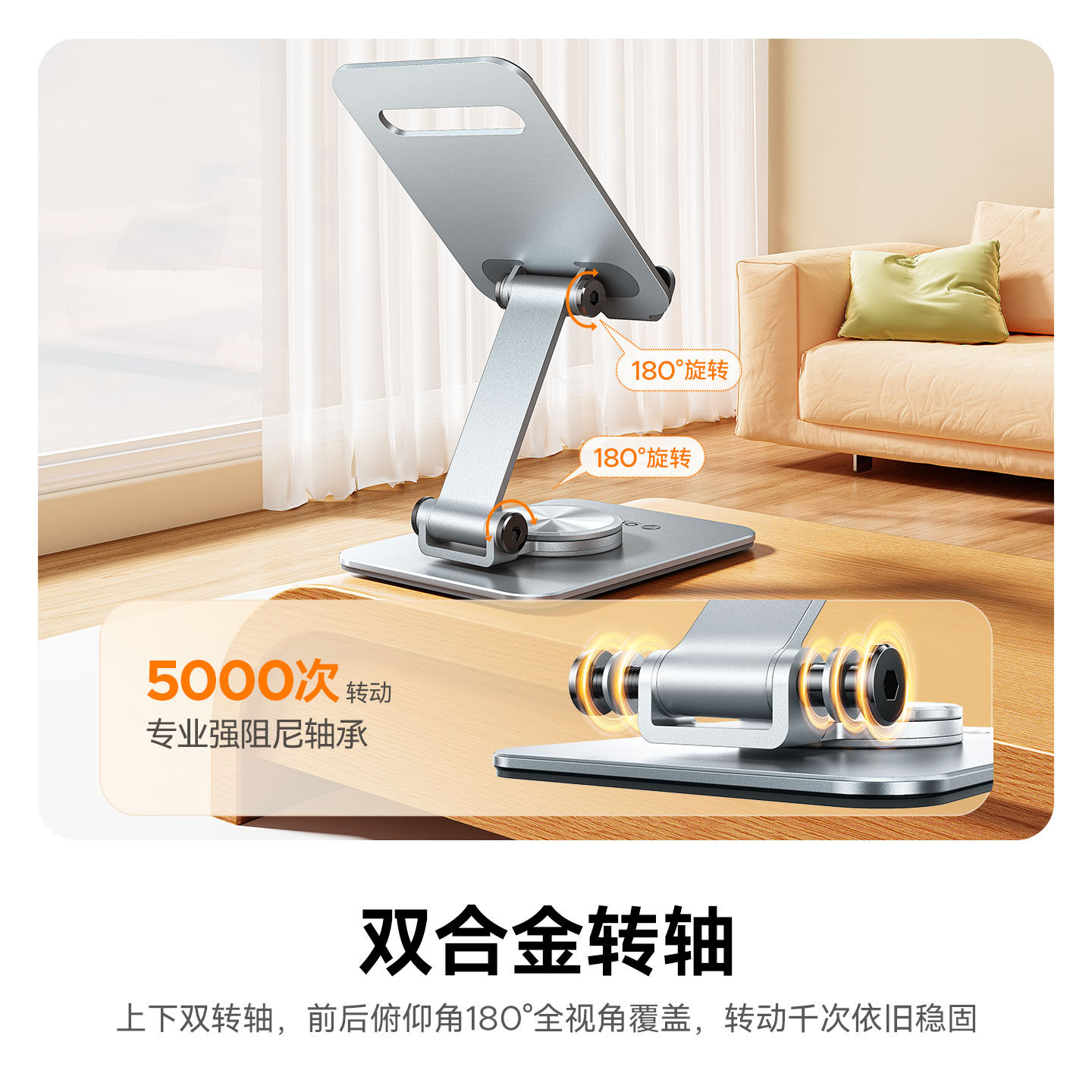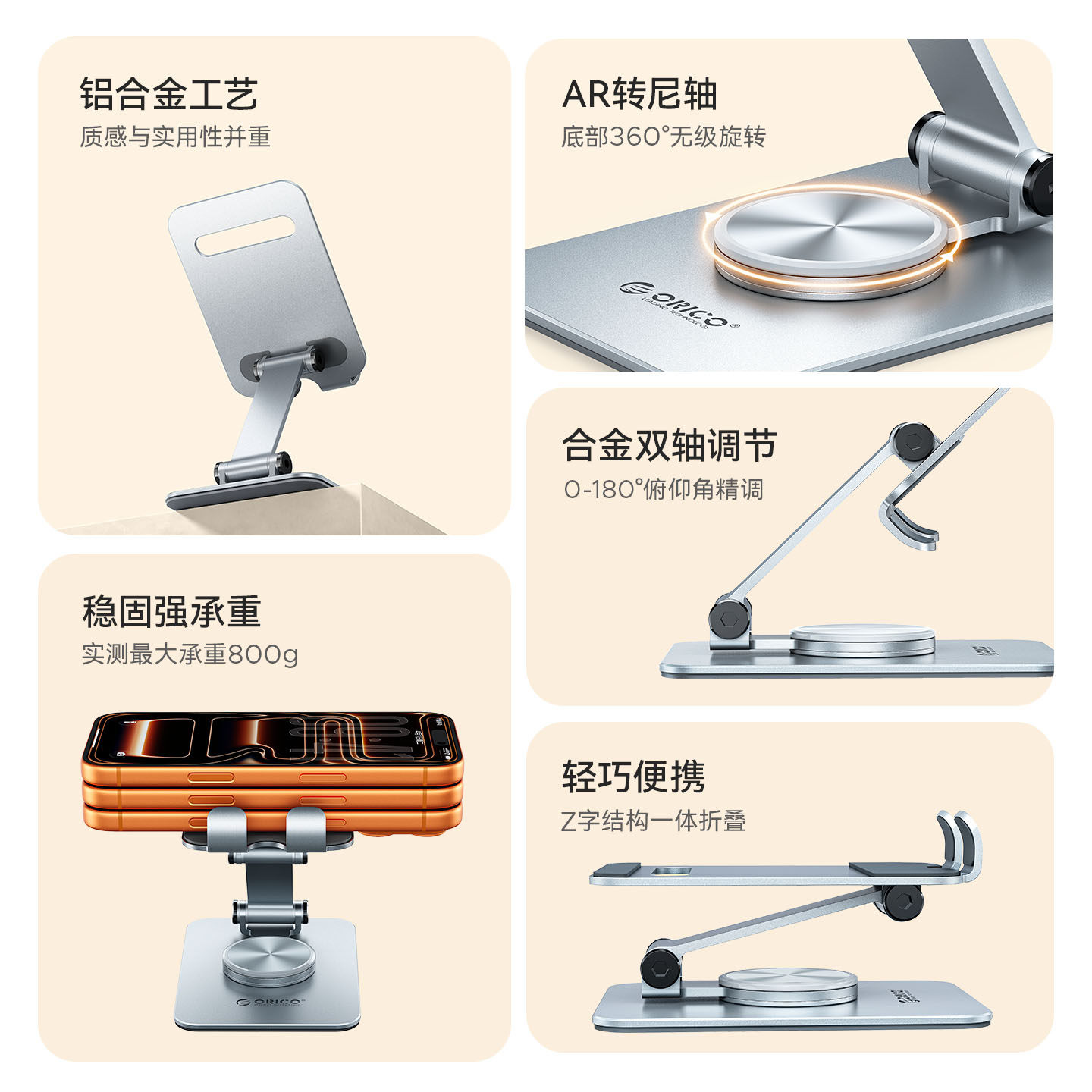 奥睿科手机支架2025新款铝合金手机稳固承重桌面支架折叠便携万向360度无极旋转懒人支架磁吸支架直播底座
