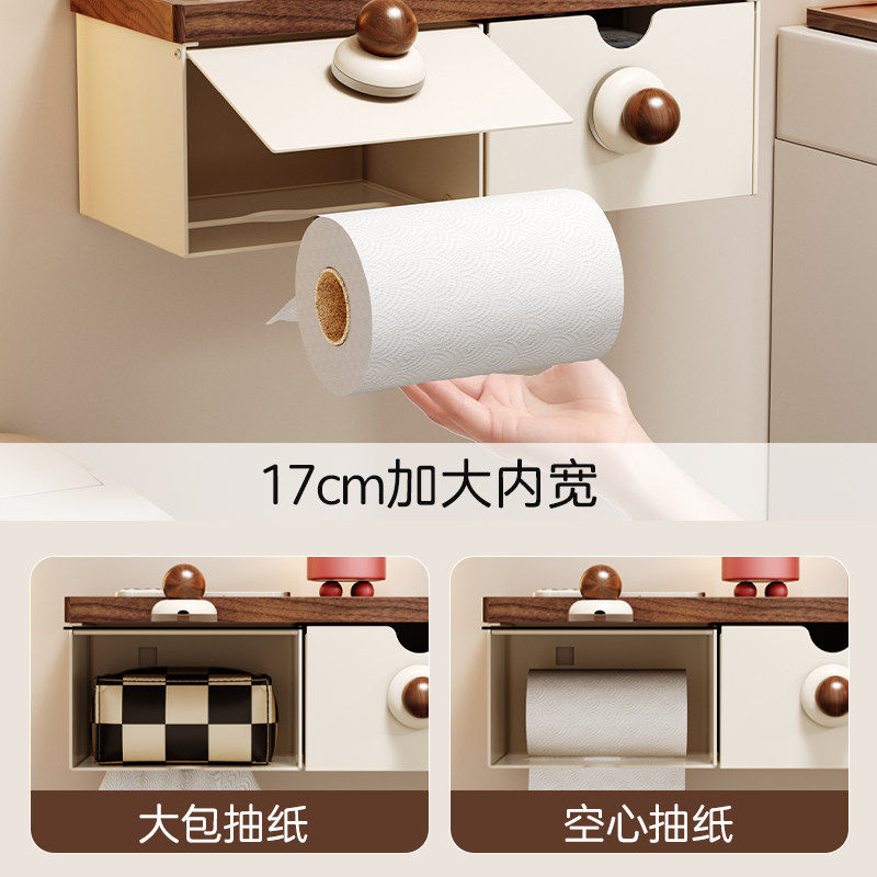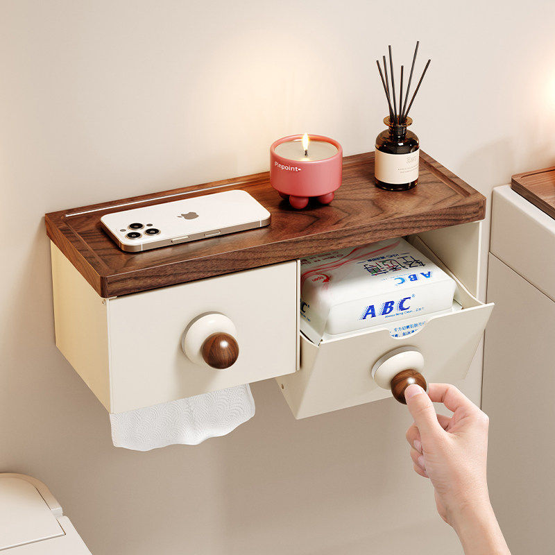 胡桃木卫生间厕纸盒浴室免打孔壁挂式纸巾盒厕所收纳抽卷纸置物架