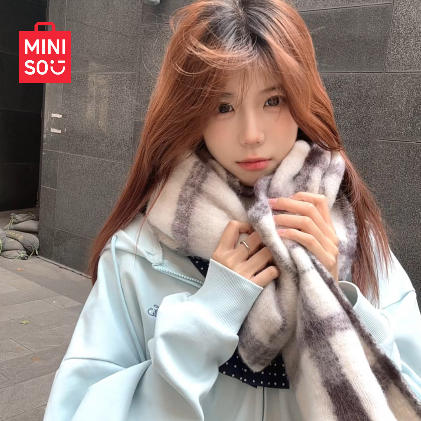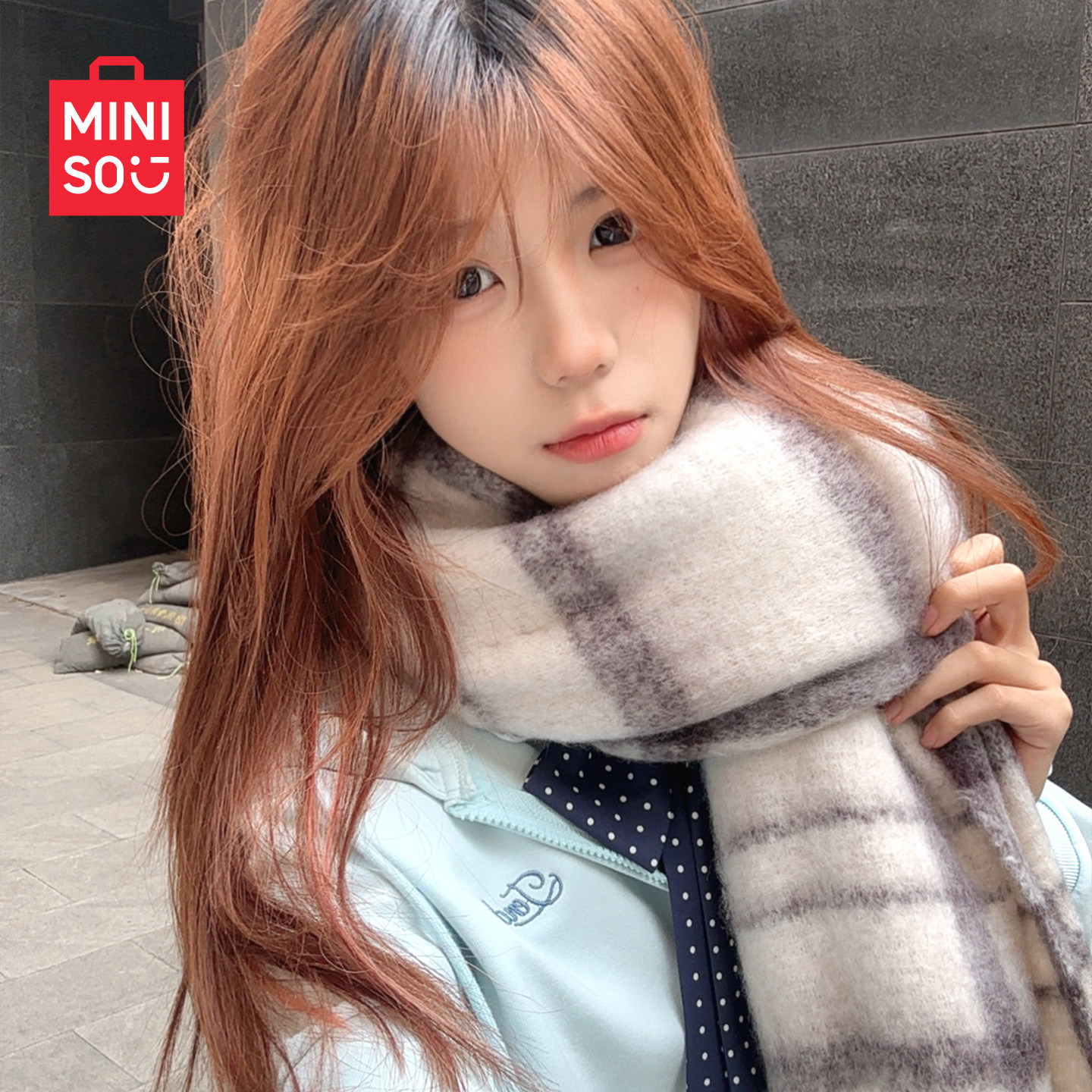 MINISO名创优品围巾加厚女格子防寒保暖百搭披肩柔软韩版2025新款
