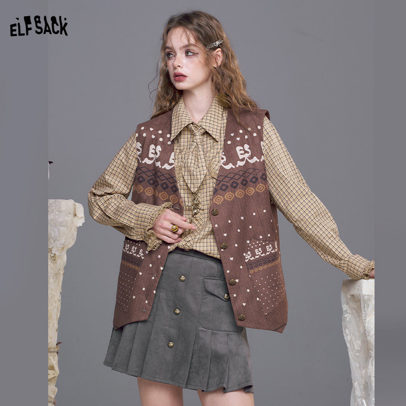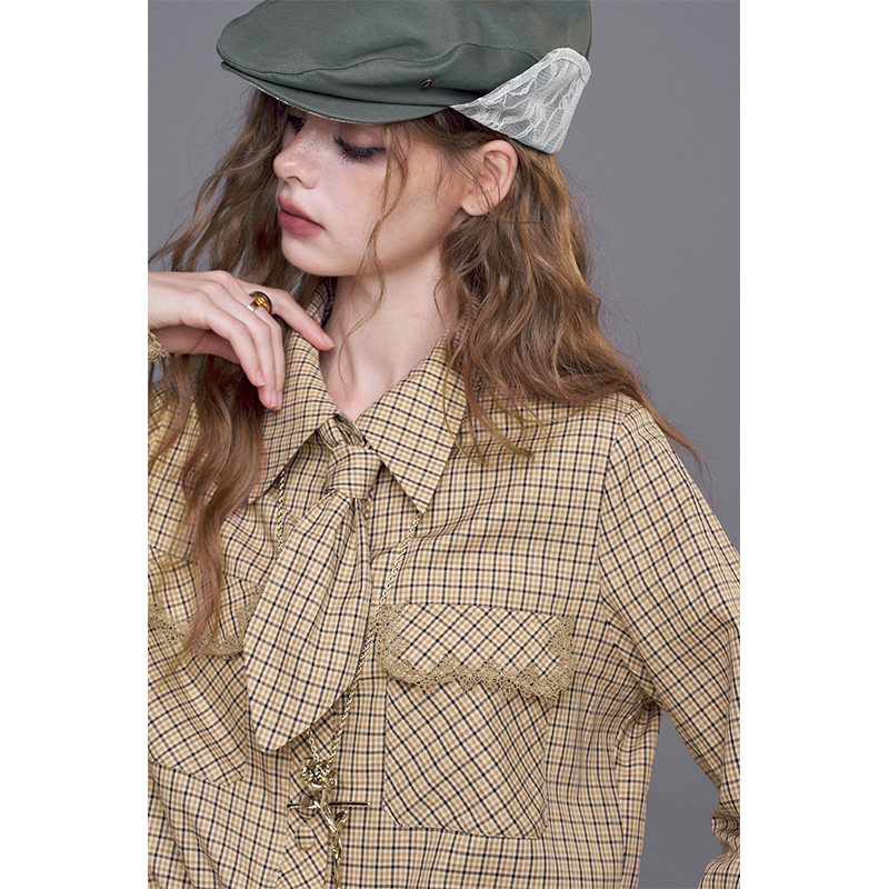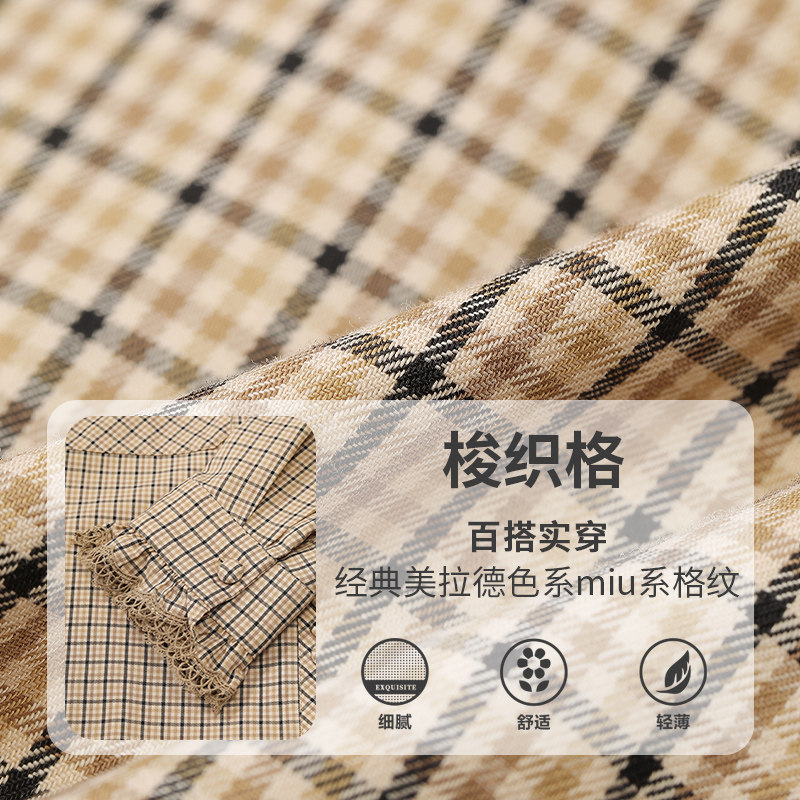 【送领带】妖精的口袋蕾丝边拼接格纹衬衫女2026春新款miu系上衣
