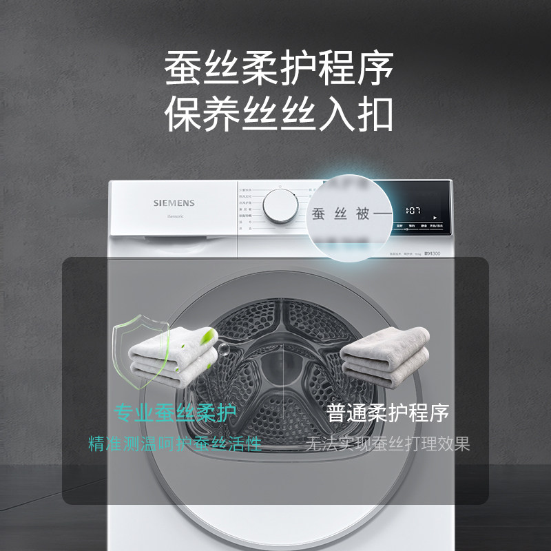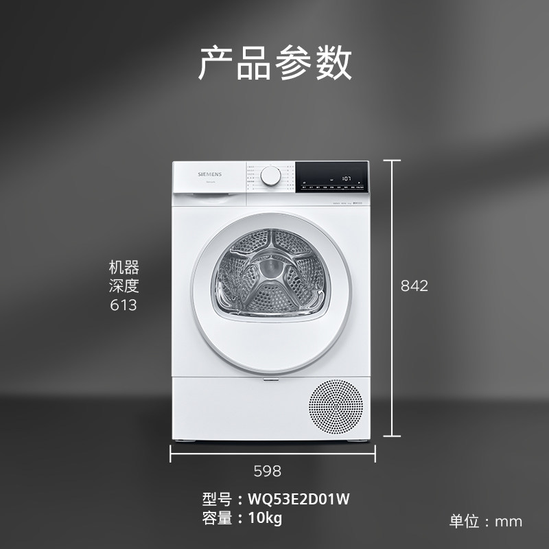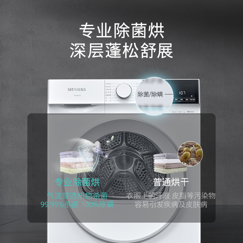 【蓝宝石】西门子10公斤滚筒烘干机家用全自动热泵干衣机2D01