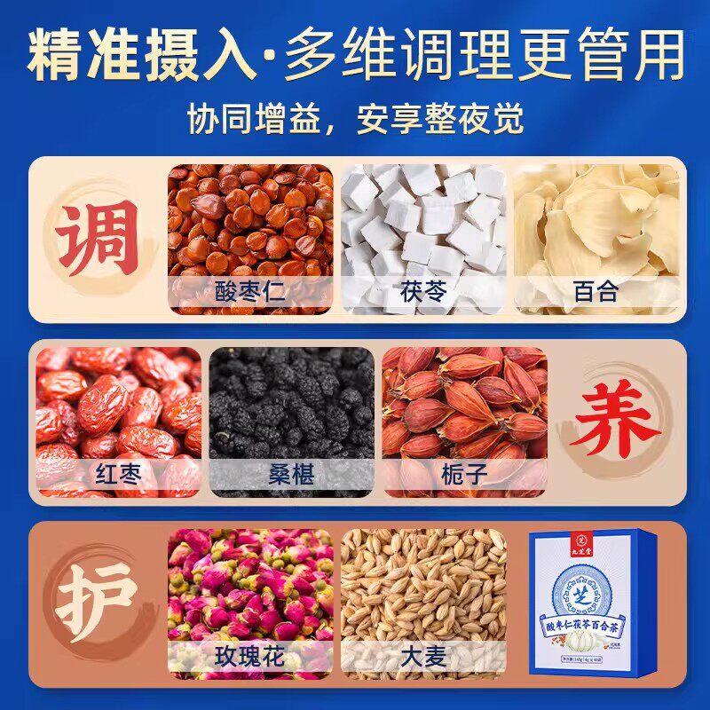 九芝堂酸枣仁百合茯苓茶睡眠茶中药材多梦睡眠差安助泡水神眠调理