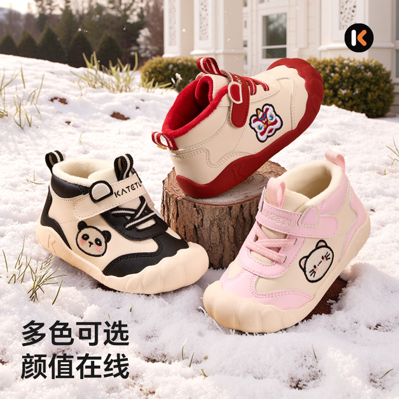 卡特兔婴儿鞋子学步鞋2025冬季童鞋赤足女童加绒保暖宝宝男童棉鞋