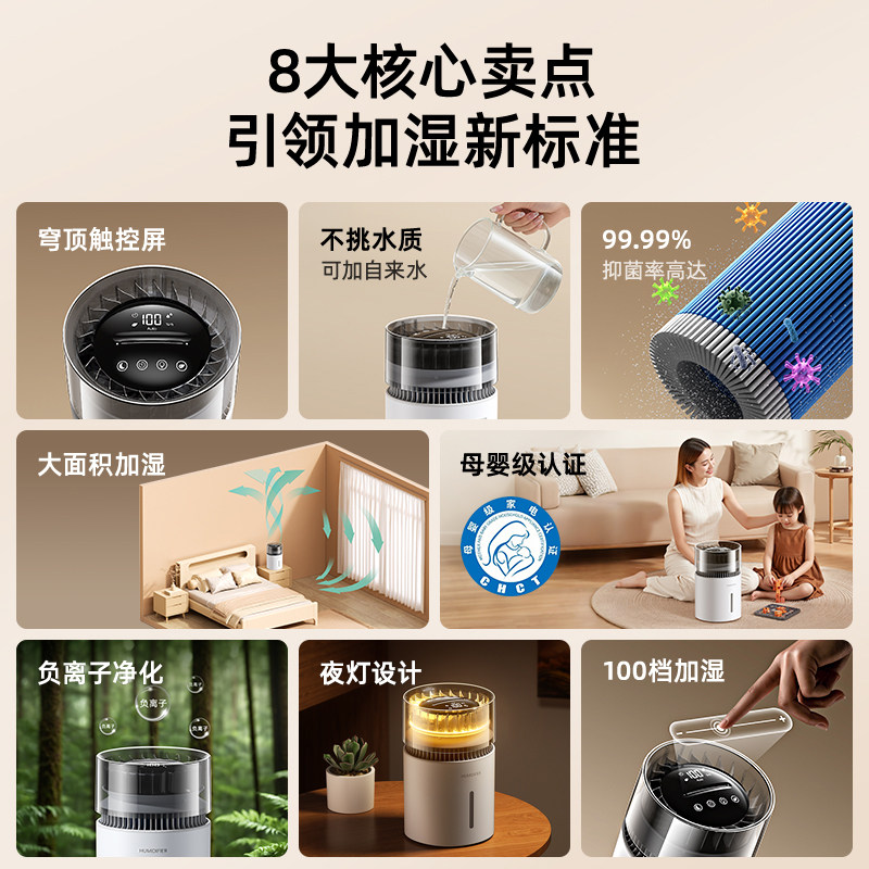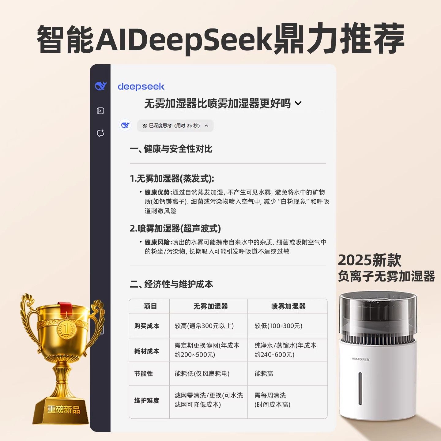 【无雾加湿】2025年新款5L大容量抗菌无雾加湿器卧室空调房母婴级家用办公低噪音冷蒸发一体超长续航不挑水质