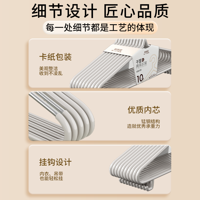 佳帮手短颈家用衣架不拖地防滑衣服撑无痕省空间宿舍缩脖子挂衣架