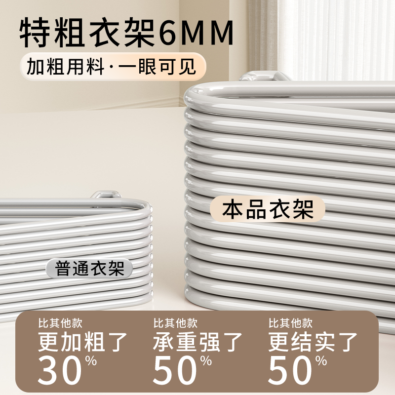衣架家用挂衣加粗加大无痕防滑成人加厚衣服架撑子金属阳台承重