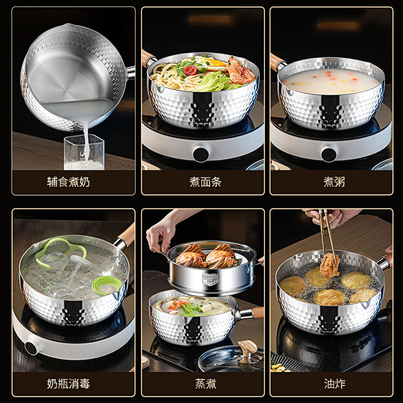 日式316不锈钢雪平锅奶锅宝宝辅食锅家用不粘锅煮面小汤锅电磁炉
