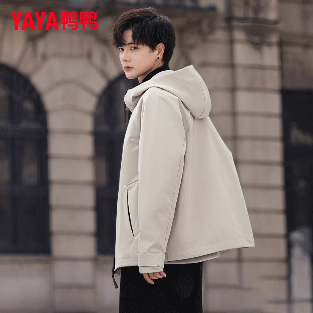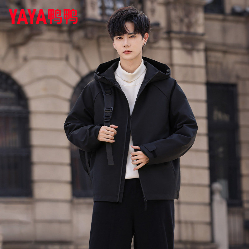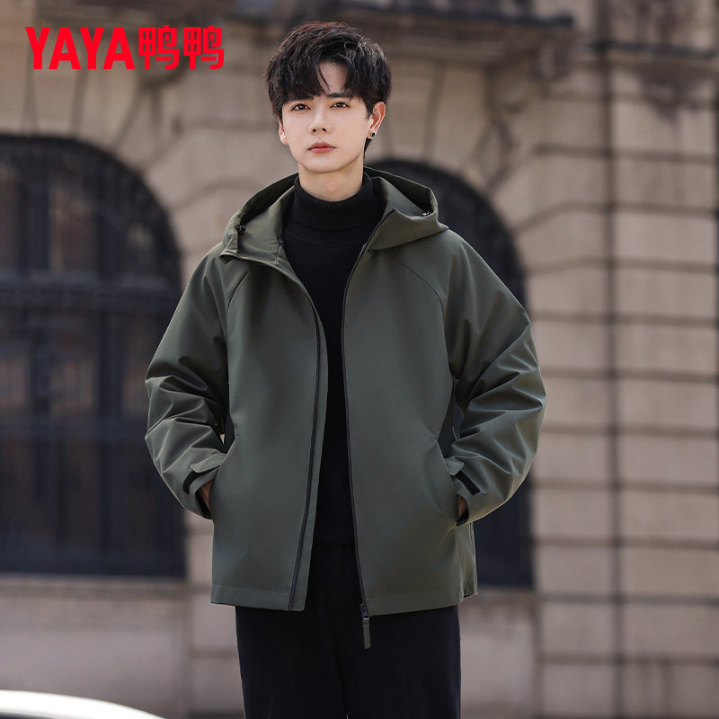 鸭鸭轻薄羽绒服男士2025年秋冬反季短款保暖休闲时尚连帽鸭绒外套