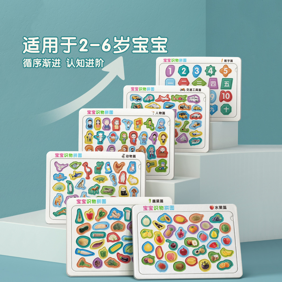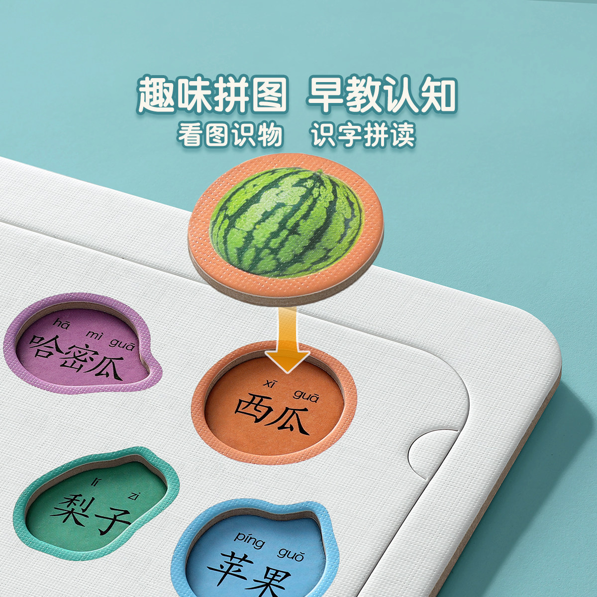宝宝识物拼图2-3到6岁益智儿童看图识字卡片男孩早教认知水果玩具