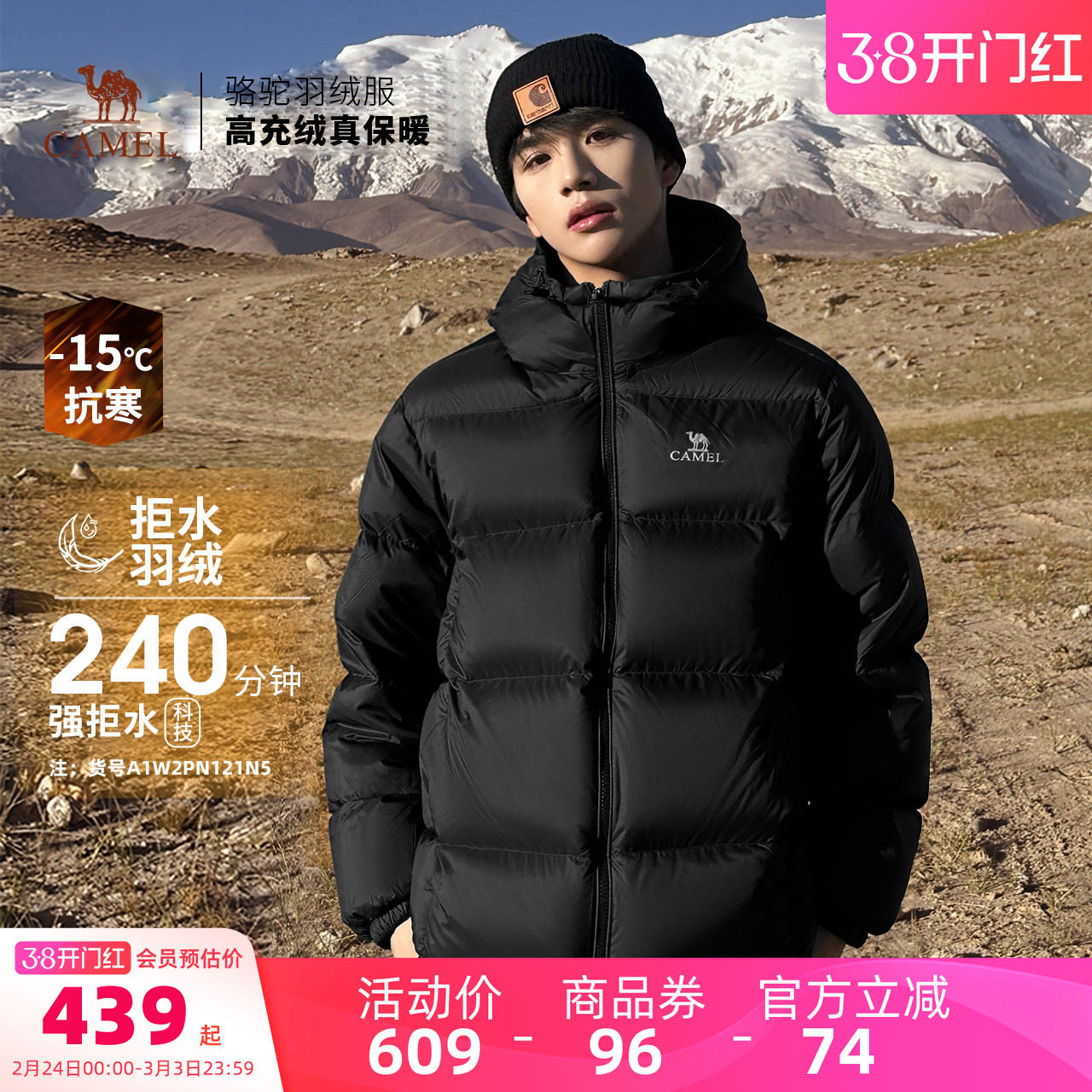 骆驼男装秋冬黑色加厚保暖鸭绒短款面包服男女同款防水羽绒服外套