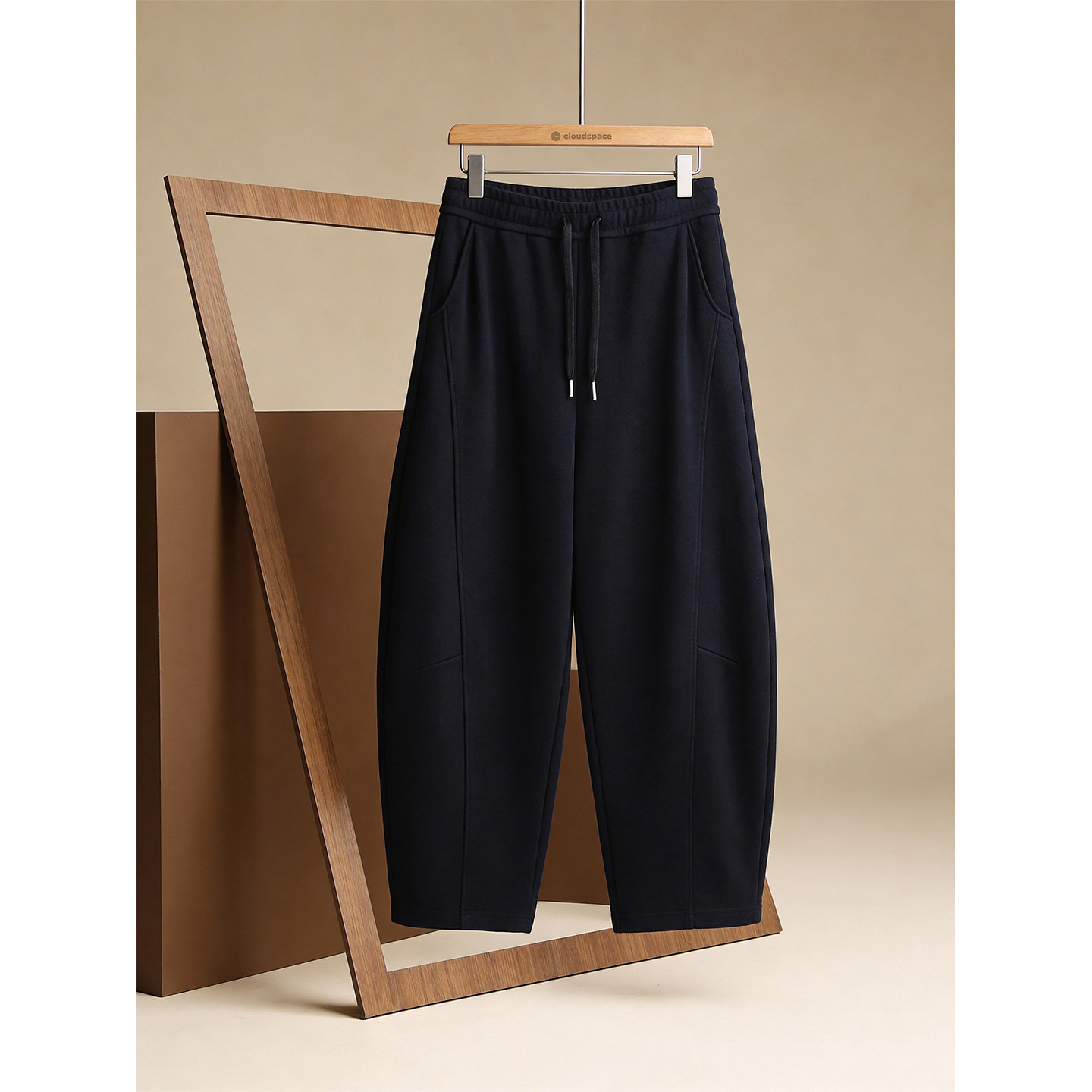 云上生活【节奏】羊毛混纺廓形松紧腰弯刀裤2026春季宽松休闲裤女