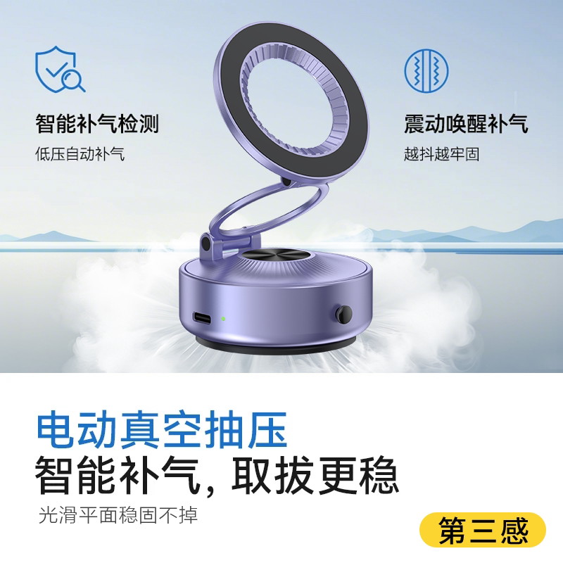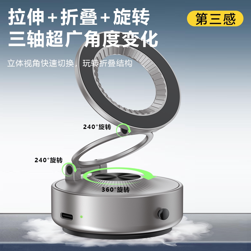 第三感智能全自动真空吸附车载磁吸手机支架可旋转金属折叠支架多场景通用桌面纹面直播自拍旅拍必备支架
