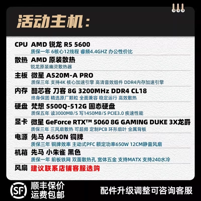装机猿玩家店微星RTX5060-8G龙爵三风扇/12400F/5600台式电脑主机