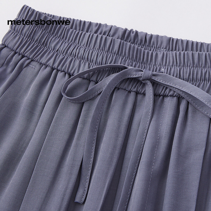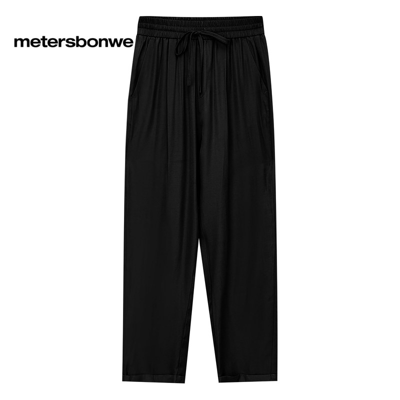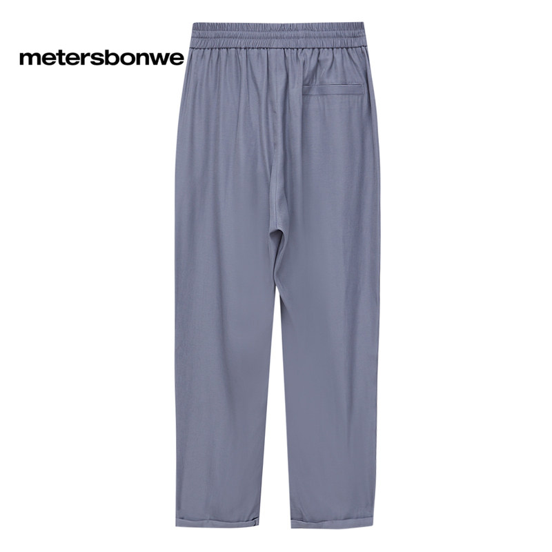 美特斯邦威休闲裤女春秋纯色简约宽橡筋腰头松紧腰阔腿裤