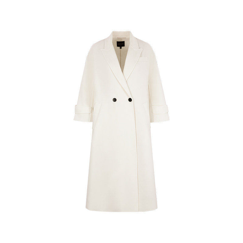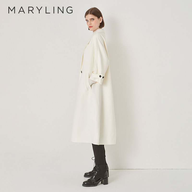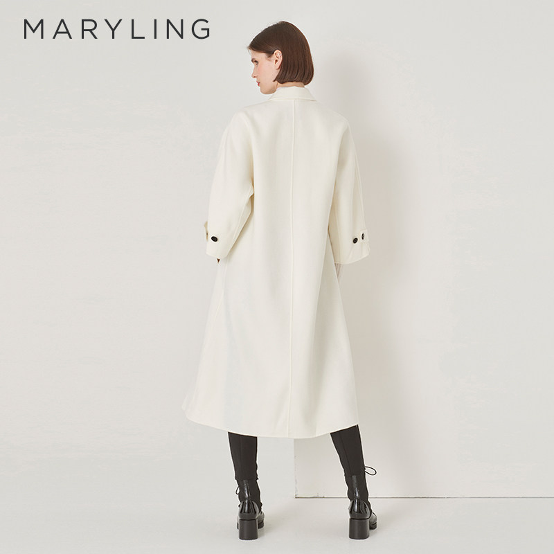 MARYLING玛俪琳秋季新品米白色西装领宽松双面毛呢大衣A1DGW93560