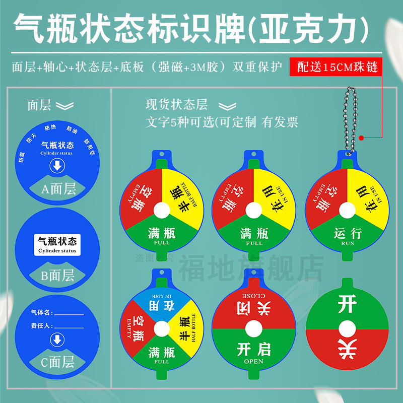 气瓶状态标识牌 亚克力材质 送珠链或卡扣