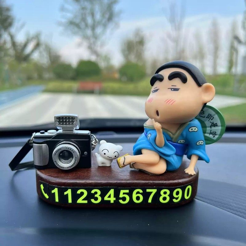 和服蜡笔小新挪车电话牌临时停车号码牌汽车车载饰品摆件车内装饰