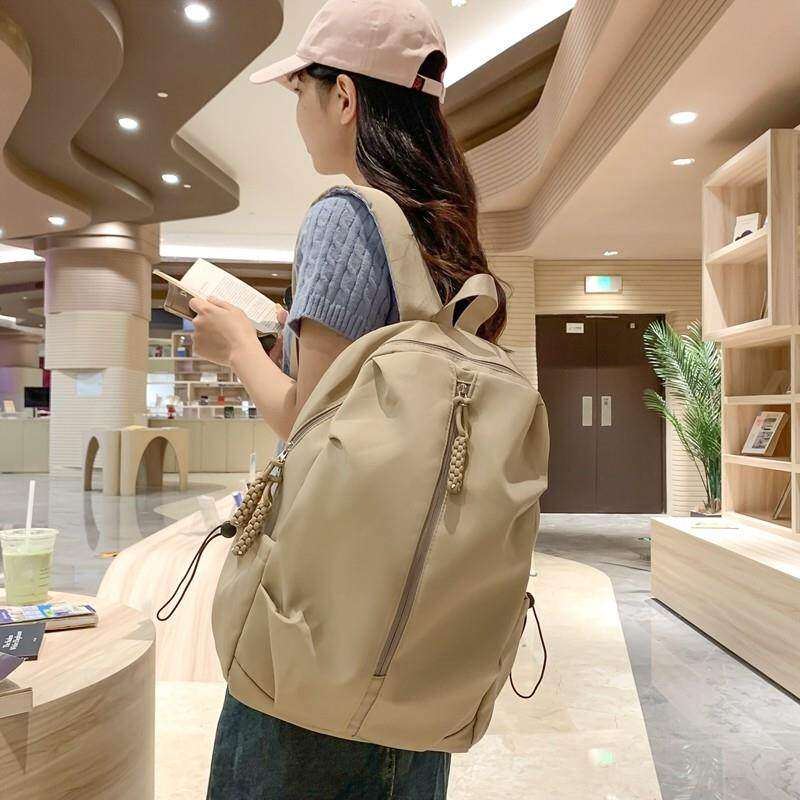 旅行书包ins大学生简约双肩包韩版百搭大容量初中休闲背包尼龙