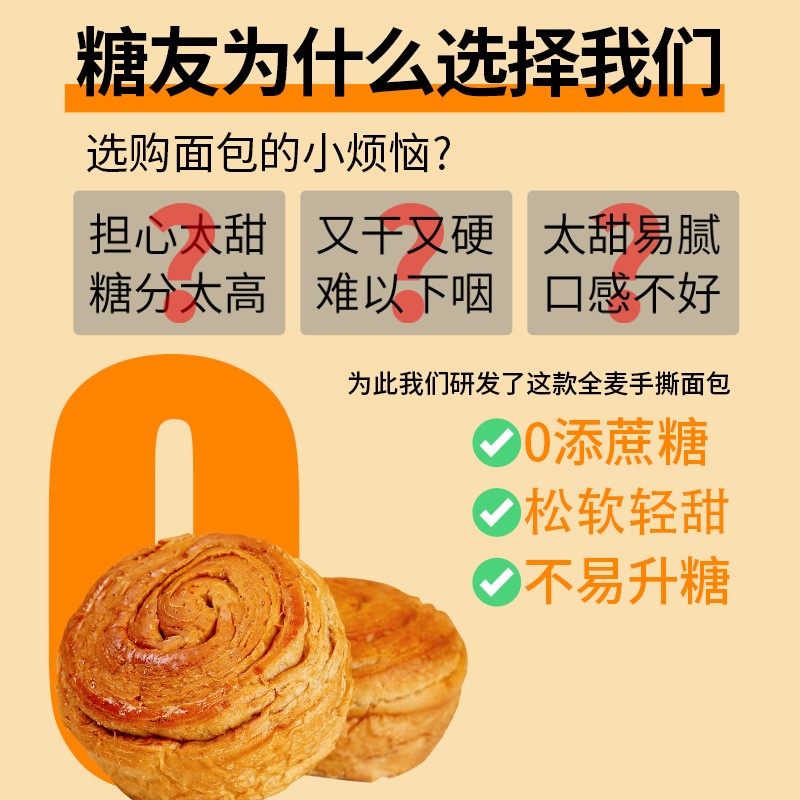 糖友糖尿饼病人可以吃全麦面包黑麦手撕无糖精食品老年早餐康早餐