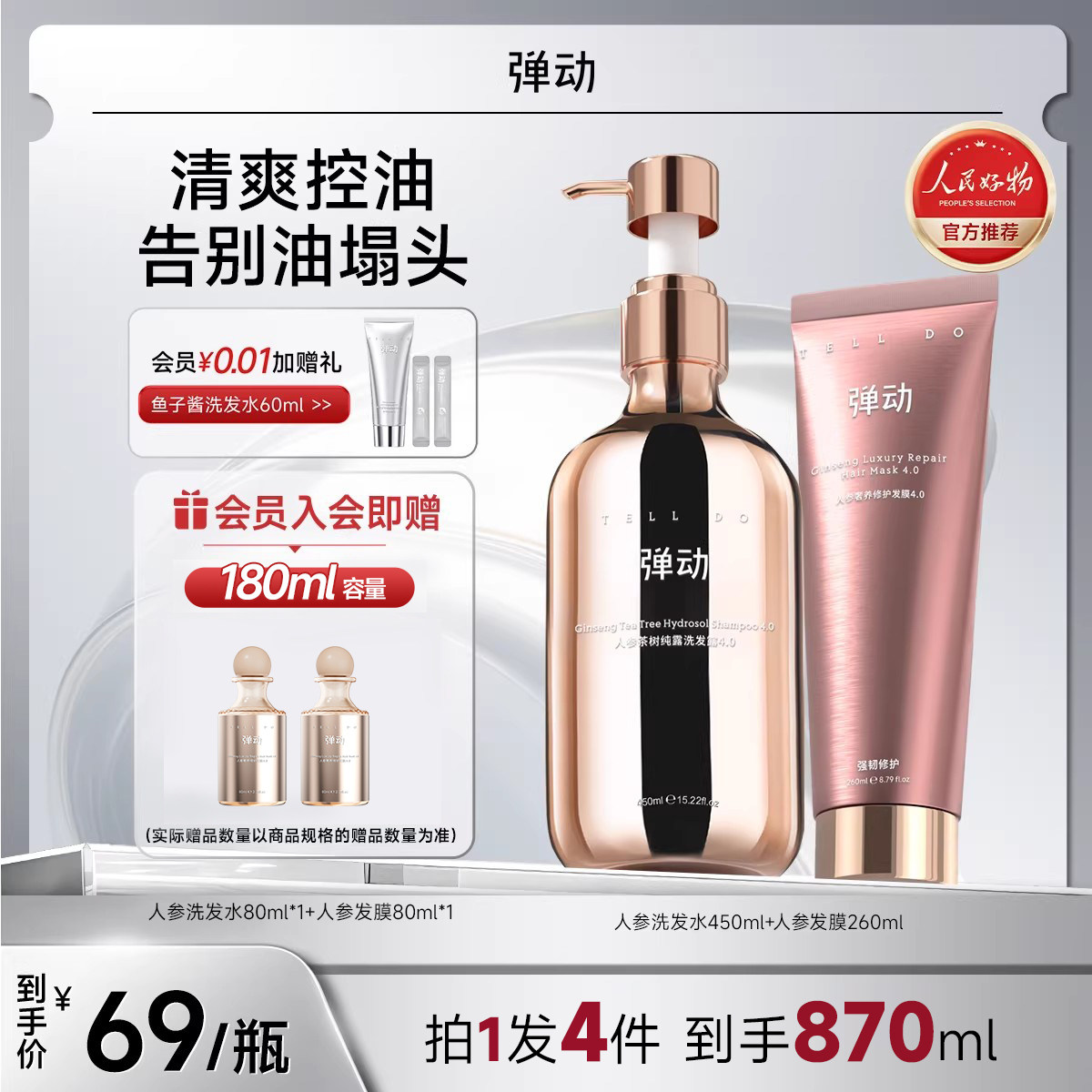 弹动控油人参洗发水蓬松止痒控油防断护发