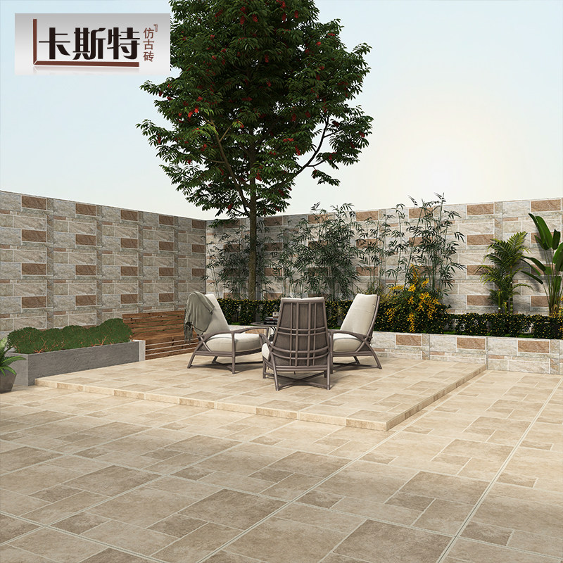 美式全瓷庭院地砖别墅室外花园仿古砖阳台院子瓷砖600x600防滑砖