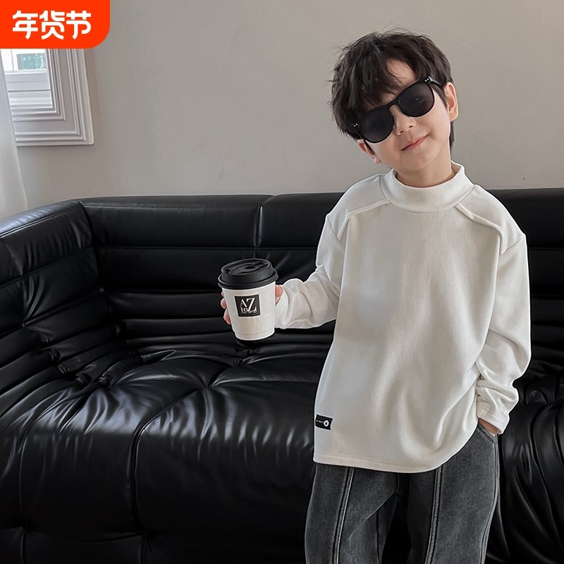 儿童打底衫半高领男童内搭秋冬款白色上衣t恤加厚德绒打底秋衣