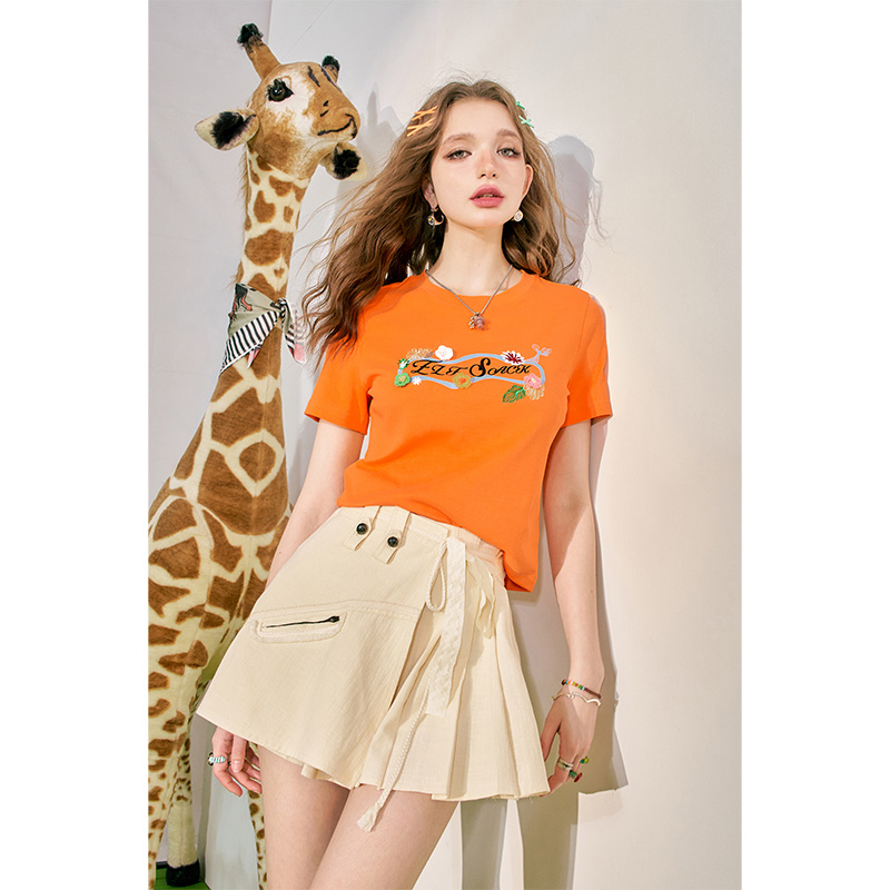 陈都灵丨凉感T森马短袖T恤女修身纯色基础夏季新款圆领白色女装