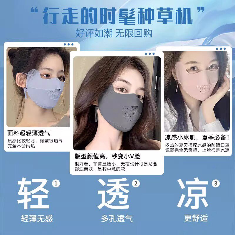 防晒口罩2026新款防紫外线女夏季冰丝无痕透气面罩防风防寒立体