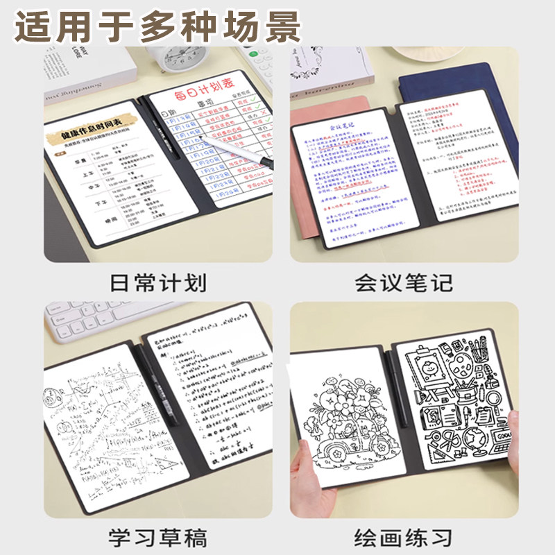 白板笔记本可擦白板本可擦写白板笔记本手拿书写底板本子可折叠写字本草稿本便携式速画本重复用桌面白板本