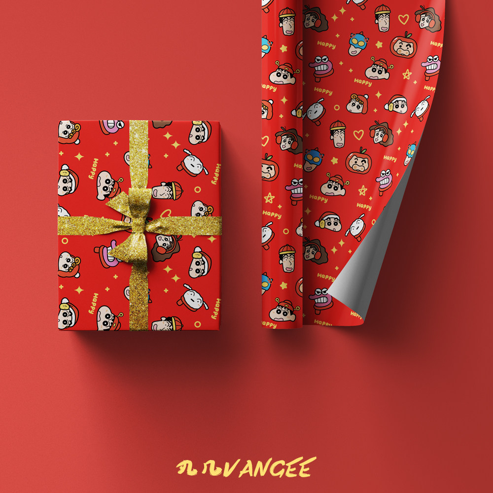 喜庆蜡笔小新花束包装纸动感超人左卫门礼物品盒红色纸新年书皮封