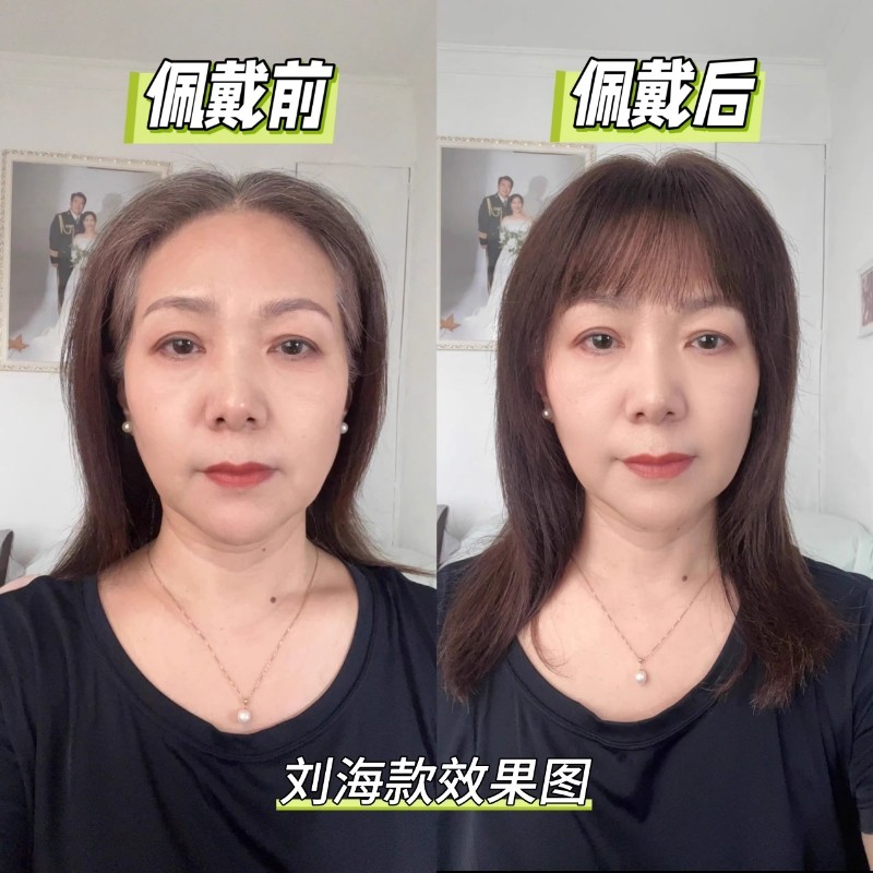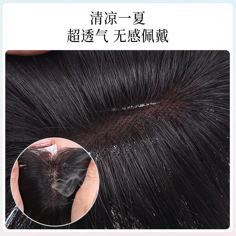 头顶假发片【真人发丝】白发遮盖八字真发无痕中老年人刘海女补发