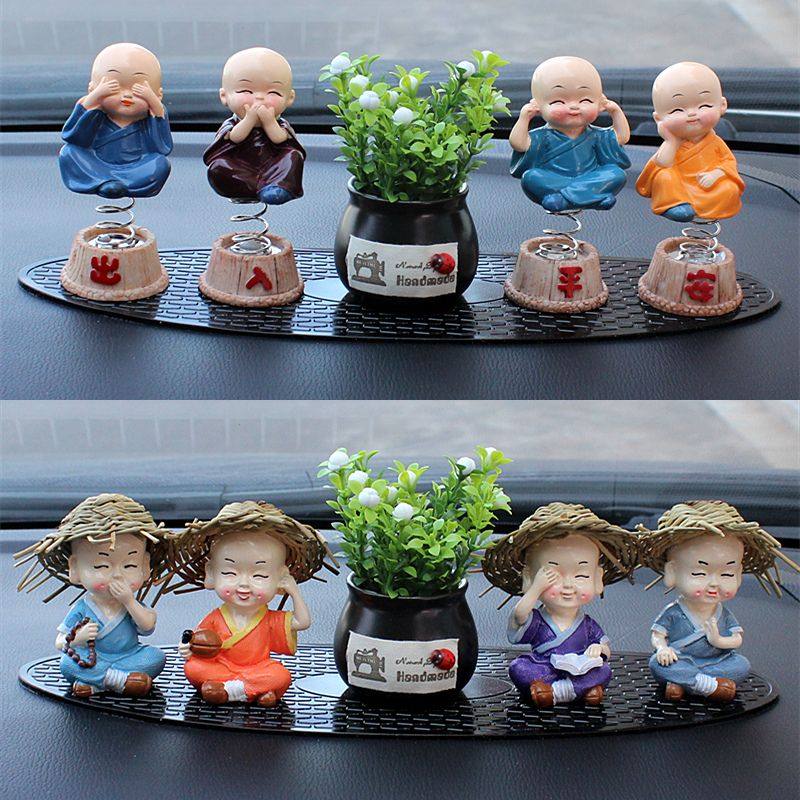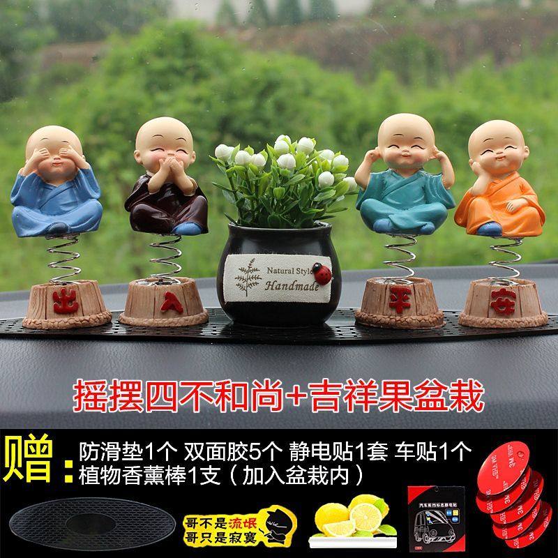 汽车摆件摇头四不小和尚车载香薰香水草帽可爱卡通中控台车内装饰