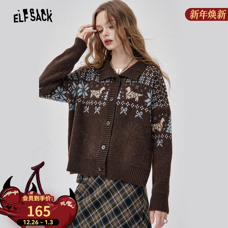 妖精的口袋polo领费尔岛复古毛衣女2025年秋冬新款复古慵懒高级感