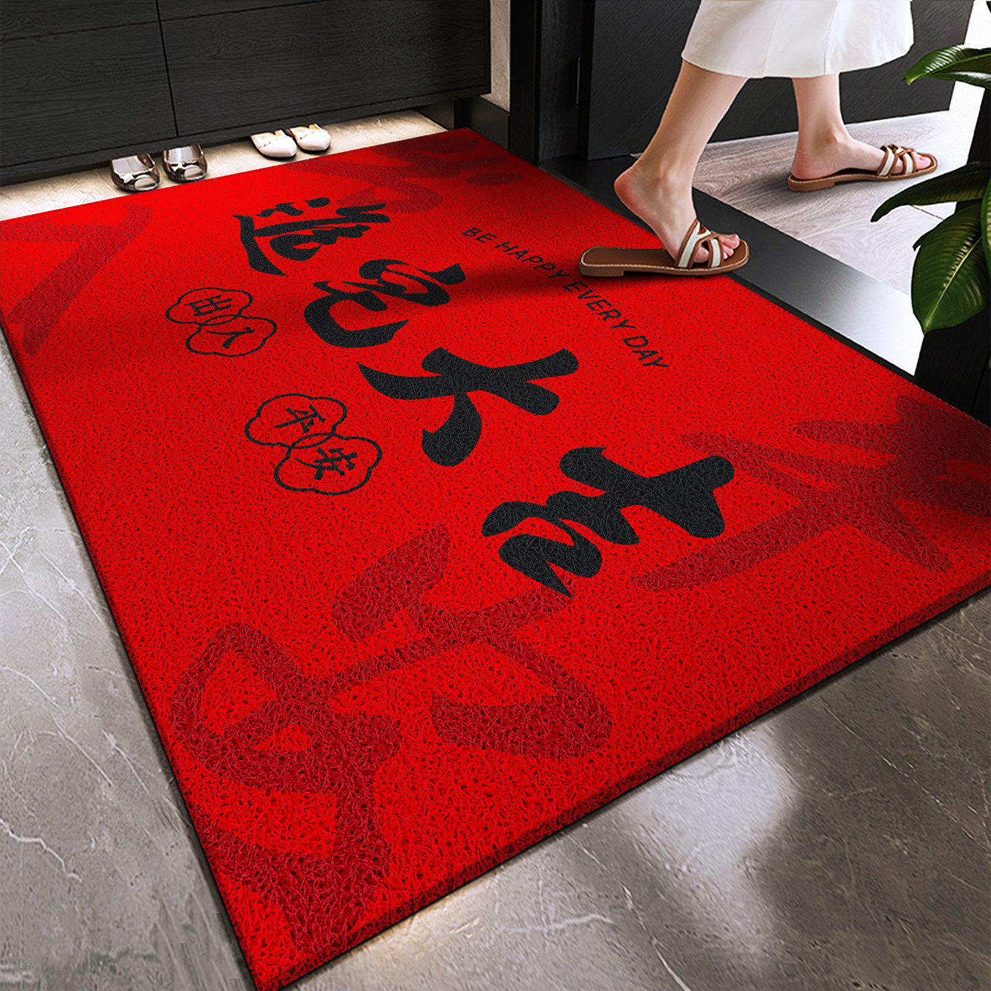 红色入户门地垫门口进门外门垫家用除尘防滑免洗耐脏喜庆脚垫地毯