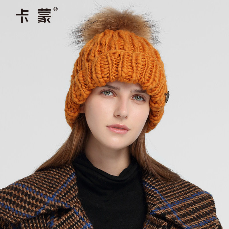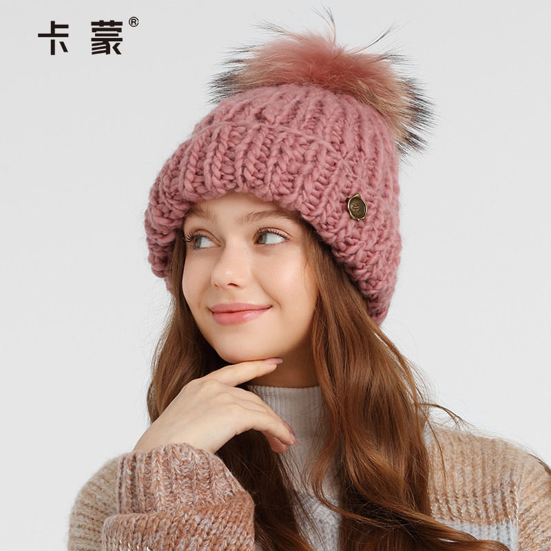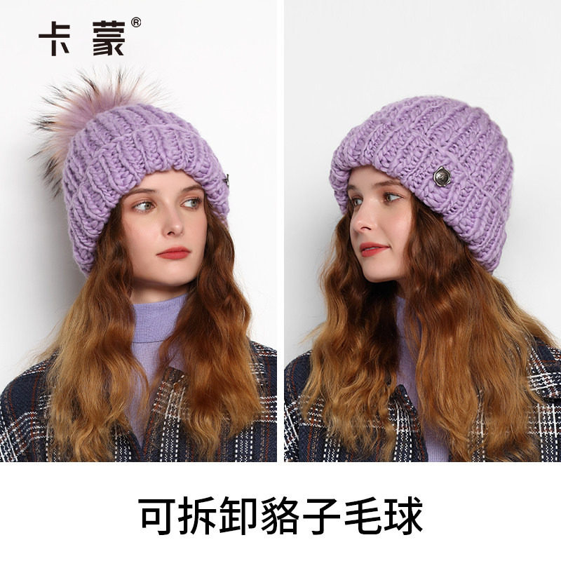 全羊毛厚实保暖 貉子毛球装饰