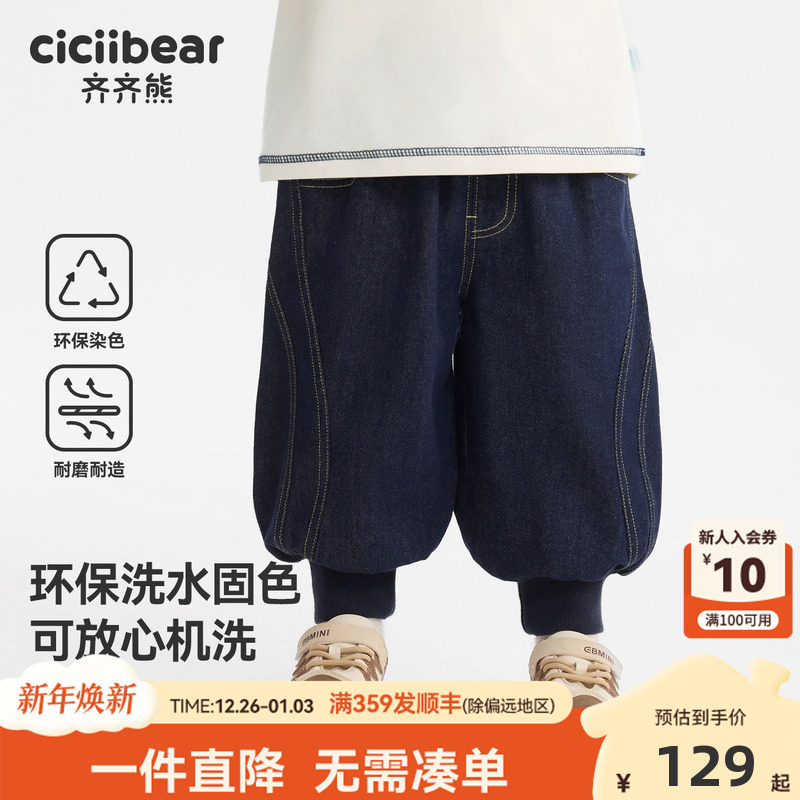[520G一体绒]齐齐熊男童牛仔裤加绒加厚冬款宝宝裤子儿童长裤休闲