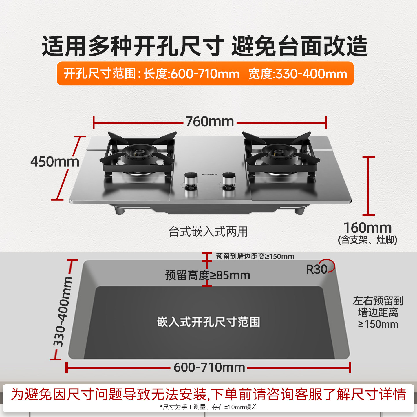 苏泊尔MS33S燃气灶不锈钢煤气灶双灶家用天然气灶具液化气灶台式