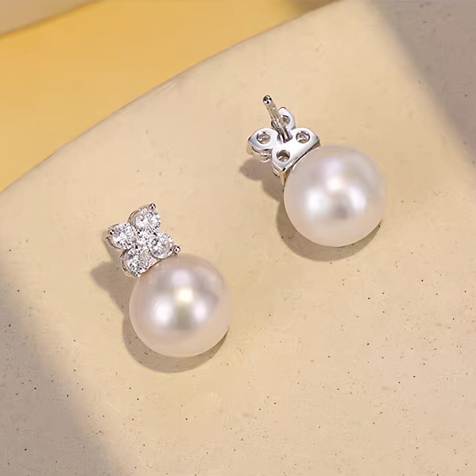 梵宝雅阁诸暨淡水珍珠耳钉女S925银四叶草耳环高级感气质节日礼物