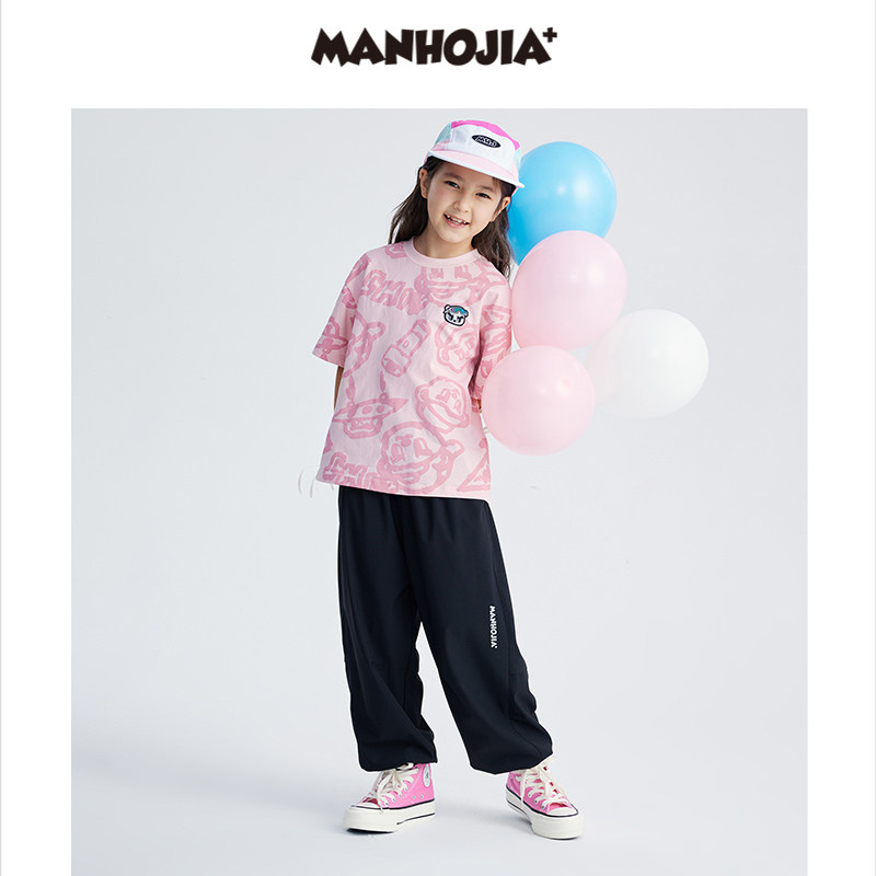漫画家潮童装凉感快干弹力冰氨丝防蚊防晒多功能冰皮气球 裤