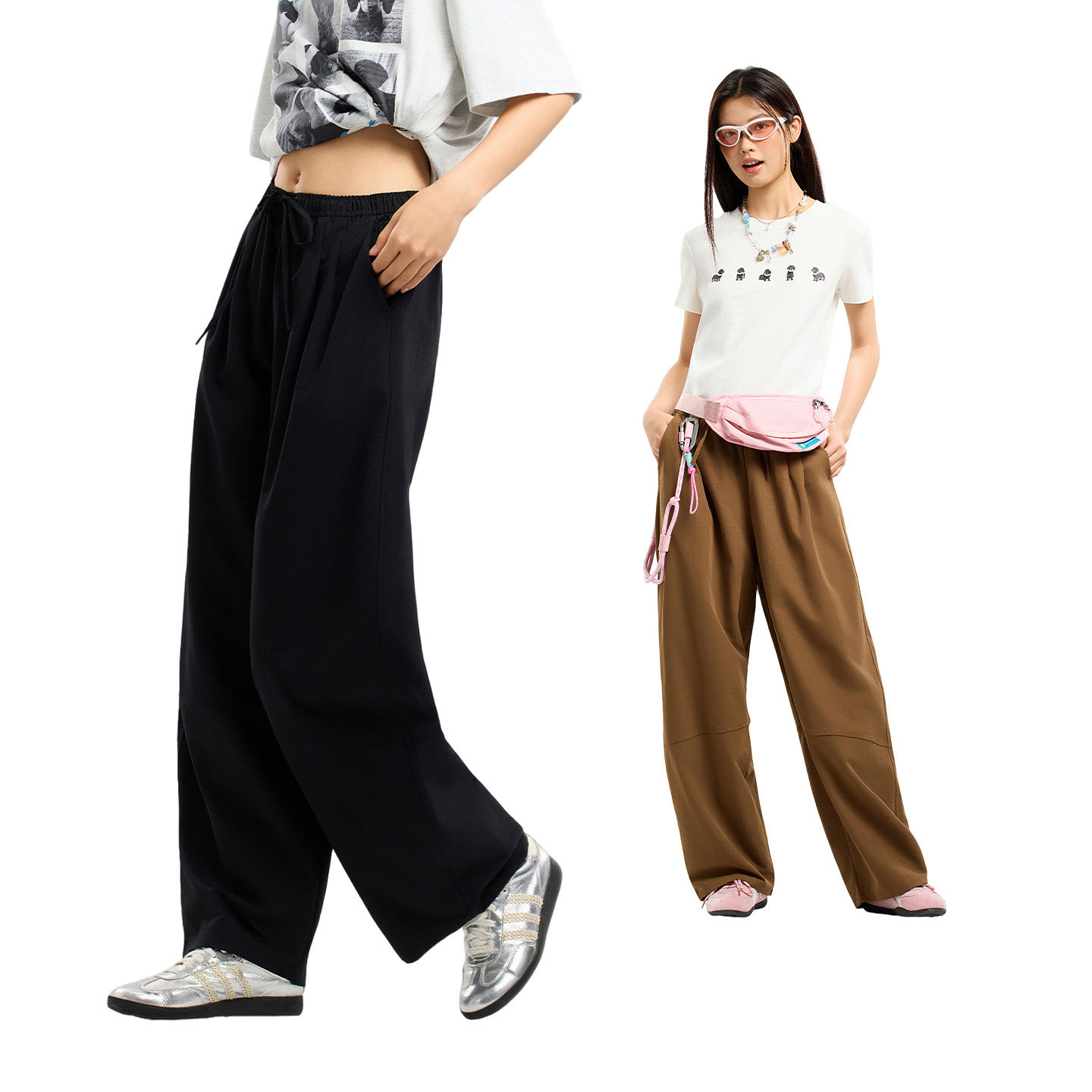 美特斯邦威阔腿裤女2026春季新款潮流休闲中腰宽松简约纯色长裤