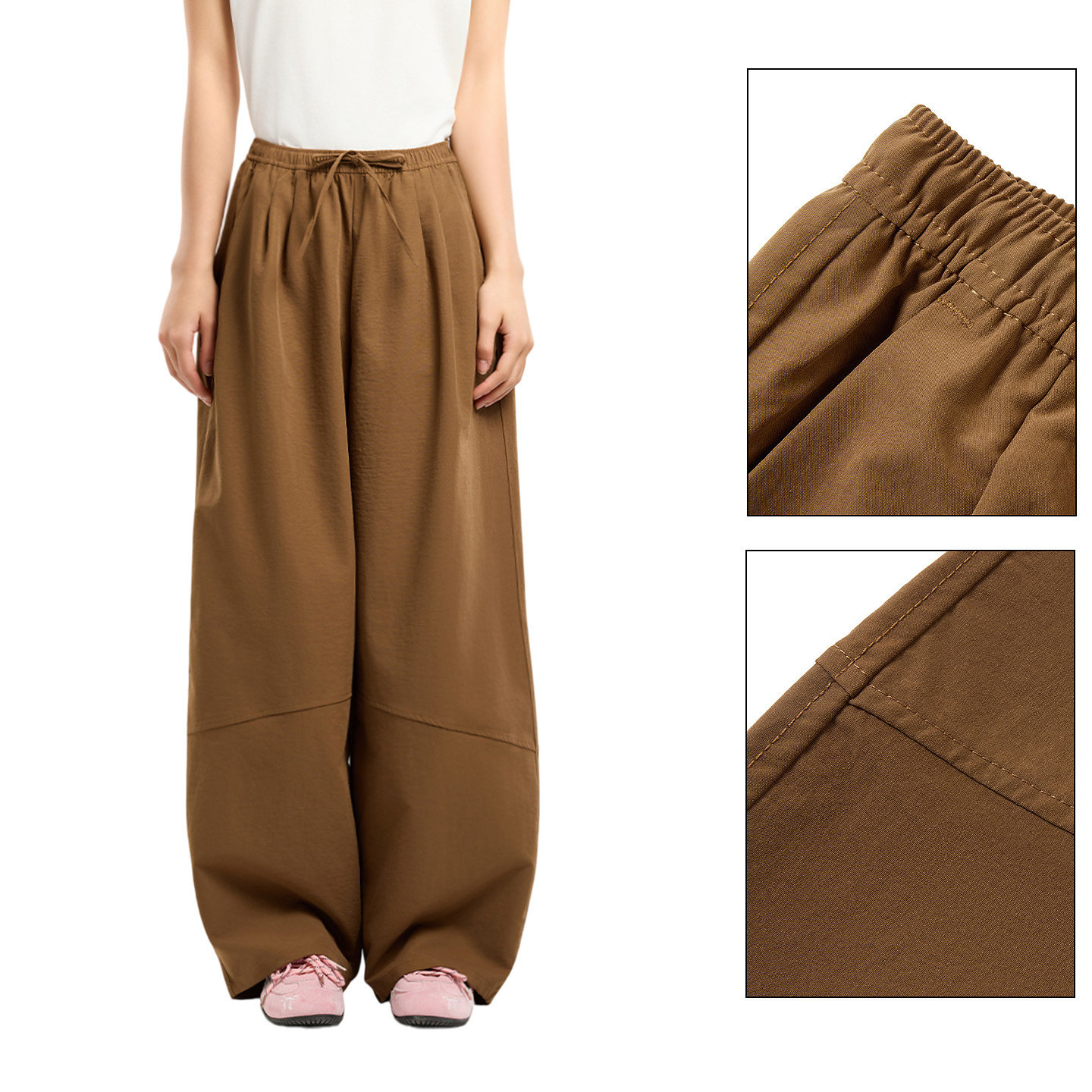 松紧腰头设计,两侧斜插口袋