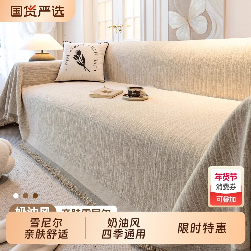 奶油风雪尼尔沙发盖布巾2025新款四季通用防滑沙发坐垫防猫抓套罩