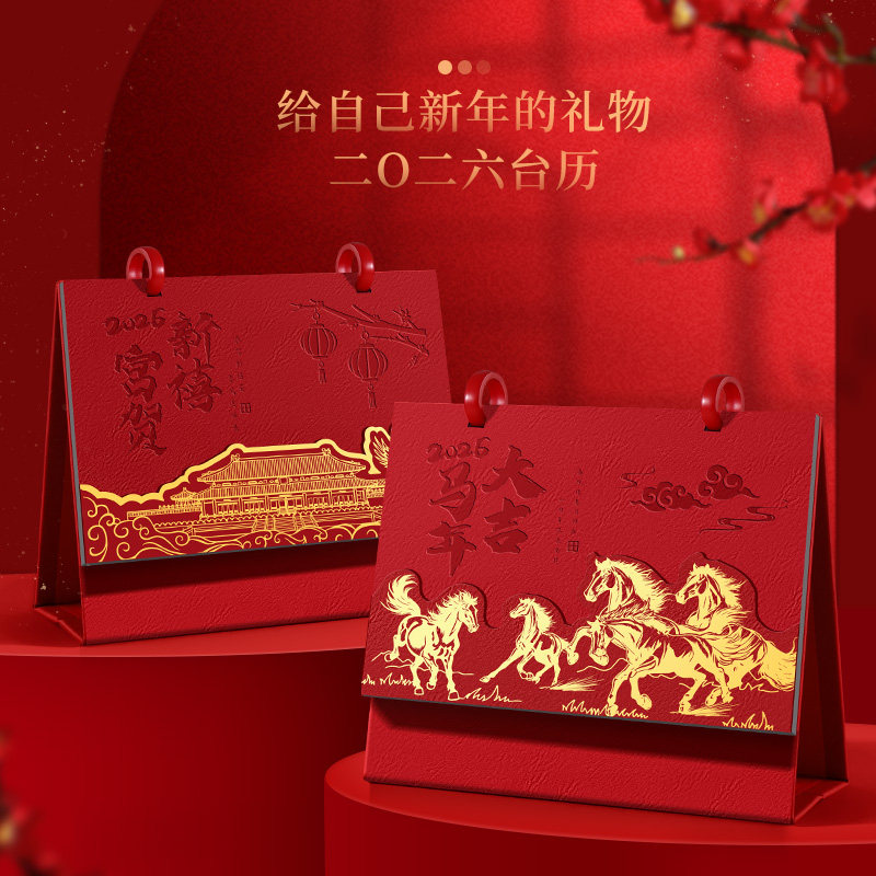 木雷原创艺术皮质台历礼盒定制2026年新款商务伴手礼实用办公桌面日历摆件企业高档礼品广告新年记事月历订做
