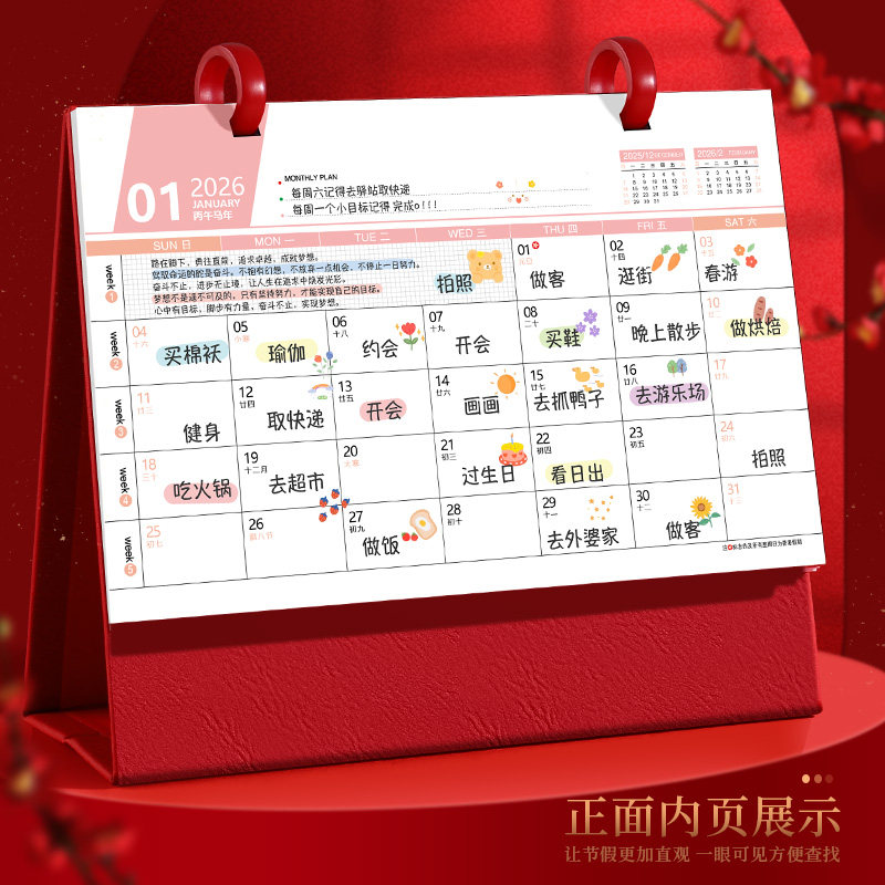 台历2026年新款日历定制logo创意简约小清新韩式办公年历个性中国风桌面摆件商务工作记事计划本订制广告月历