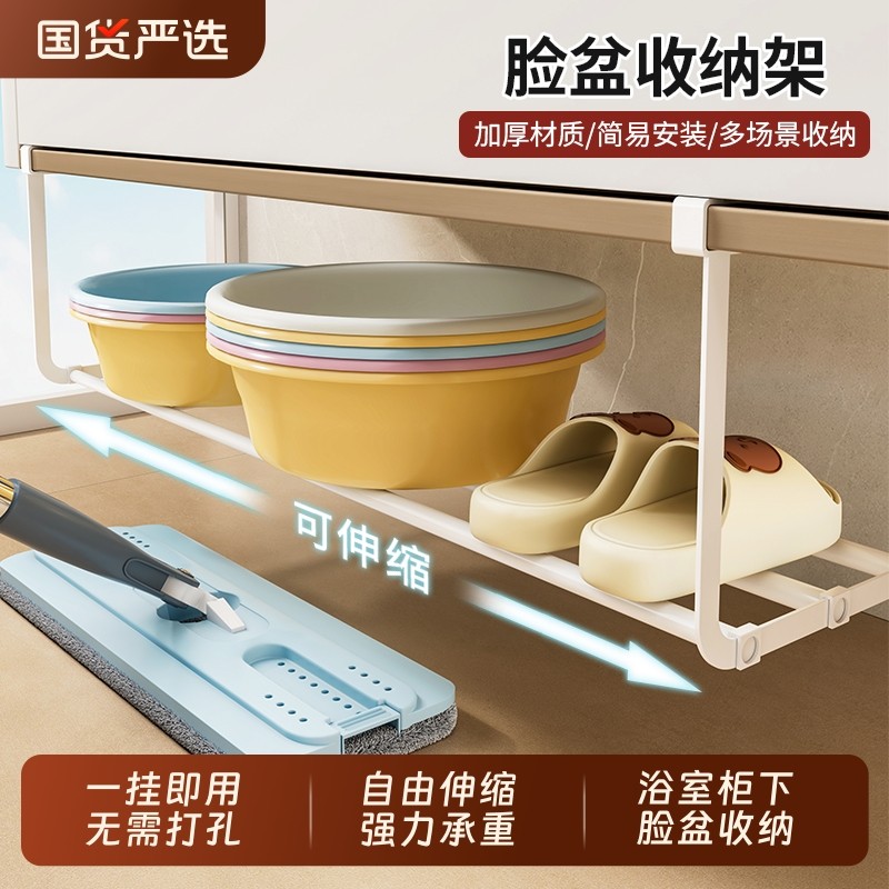 洗脸盆收纳架子浴室柜下分层收纳伸缩脸盆架卫生间置物架悬挂神器