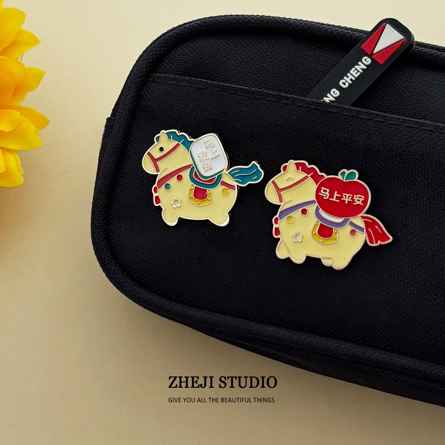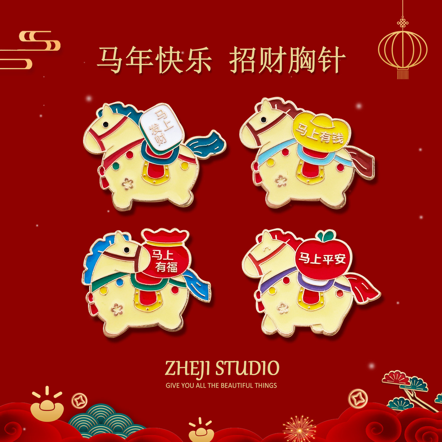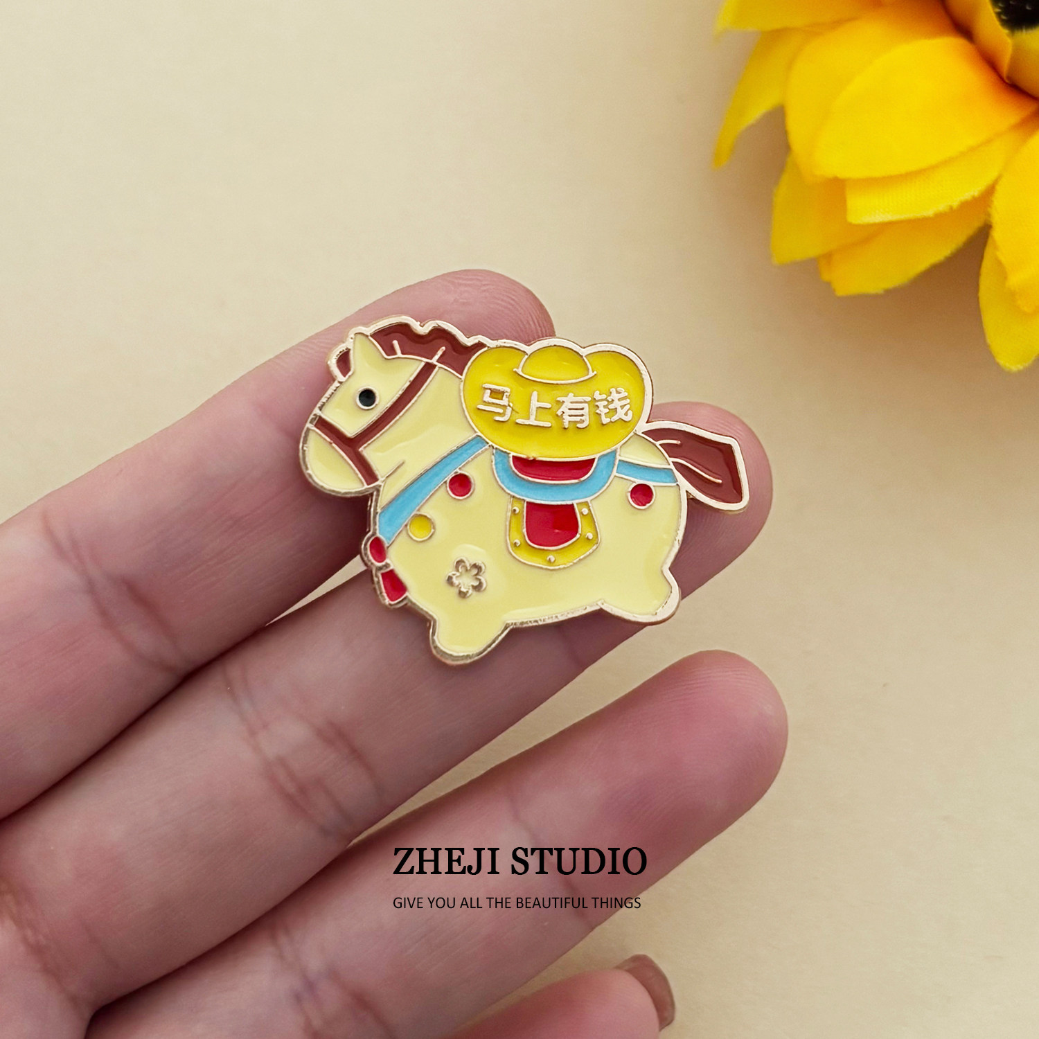 马上有钱胸针2026马年胸牌别针金属徽章节日装饰毛衣配饰固定衣服