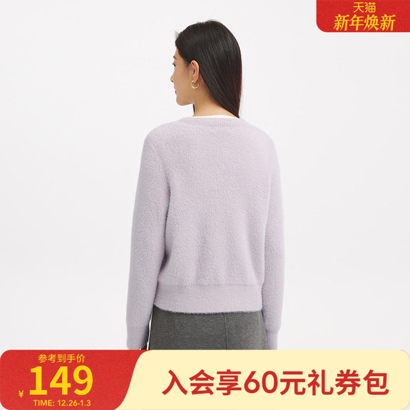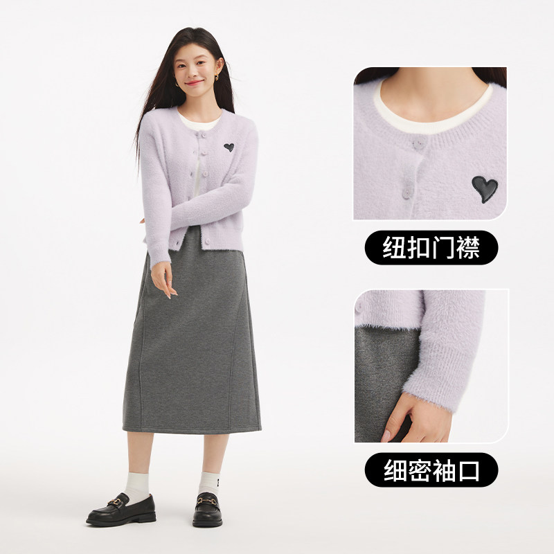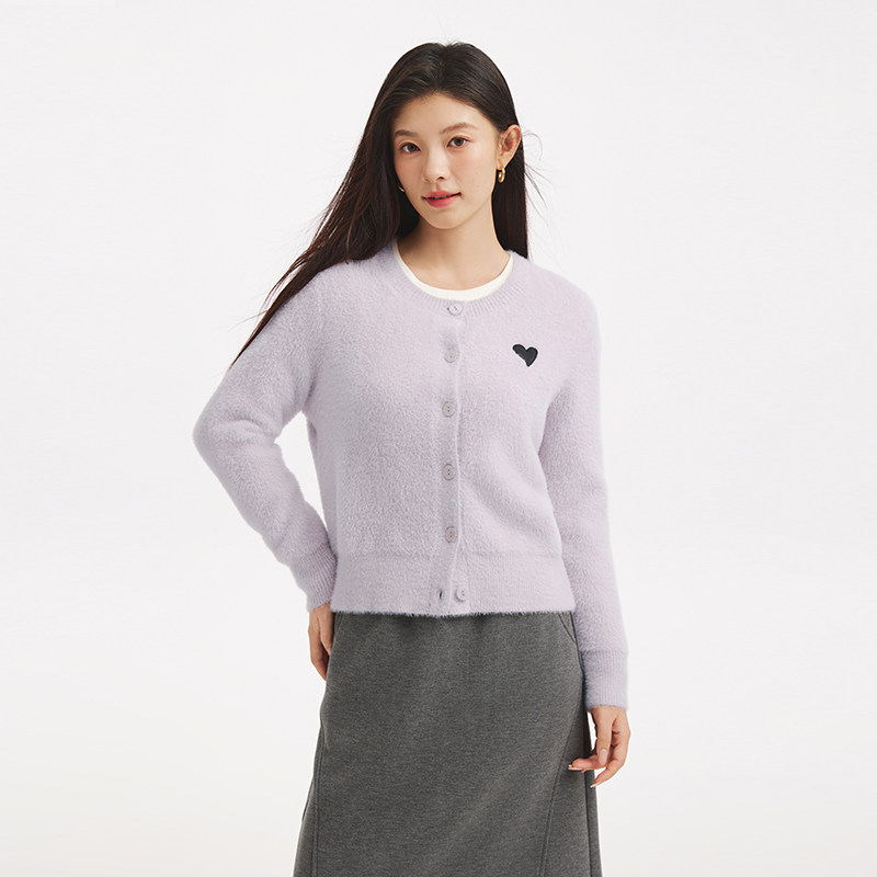 热风女士毛绒开衫毛衣打底衫2025年冬季新款爱心绒感针织衫内搭