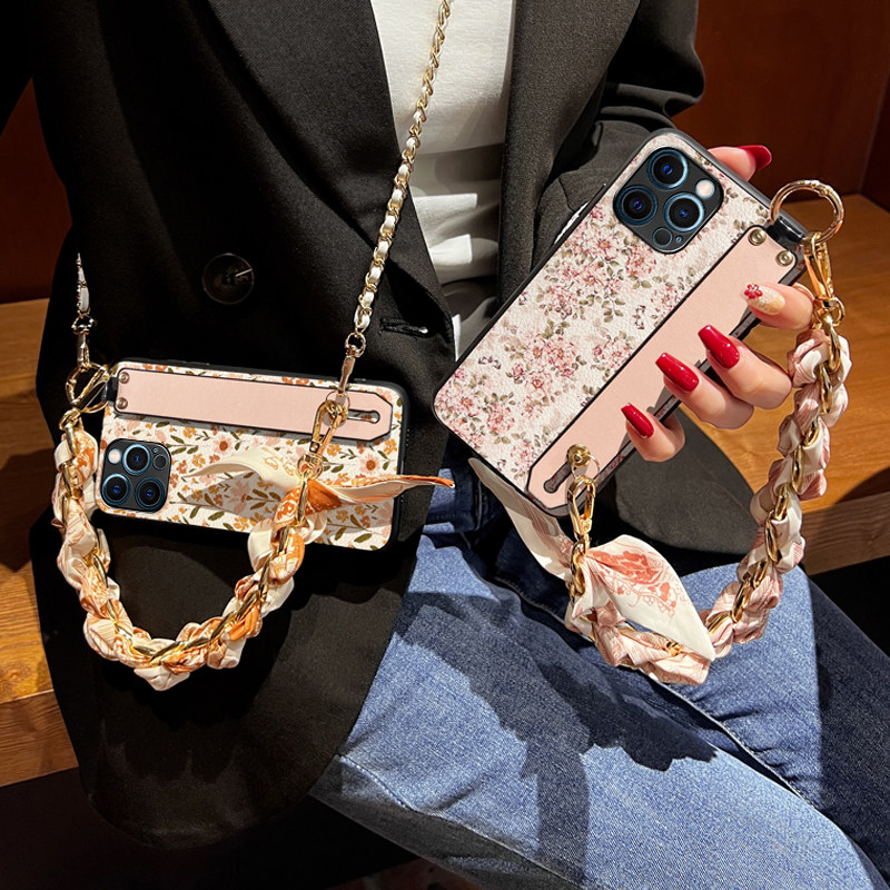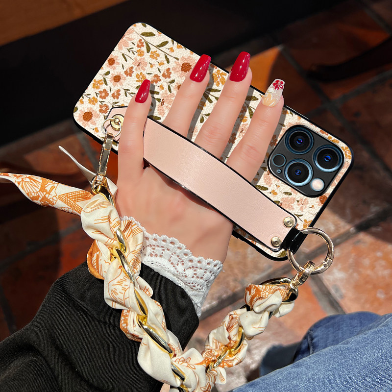 Icool适用苹果17小雏菊手机皮壳16PRO腕带支架15印花荔枝纹14promax丝巾手提13保护套12斜背链条挂绳11外壳x