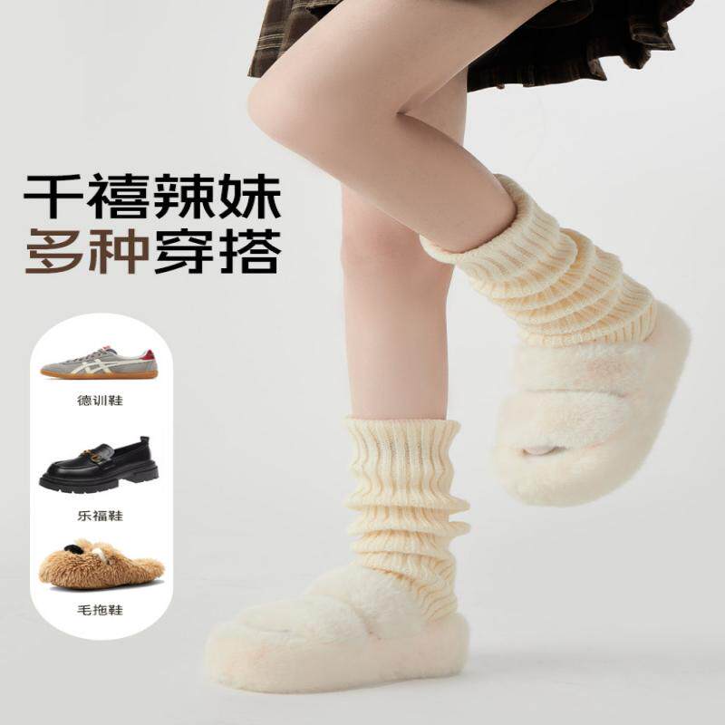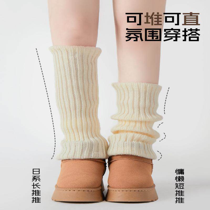 堆堆袜套袜子女辣妹y2k小腿袜秋冬保暖针织中长筒雪地靴腿套白色